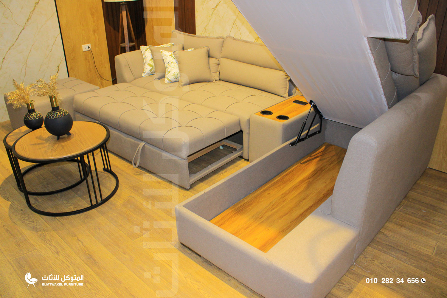 كنبة سحارة : عرض 200 سم، عمق 90 سم